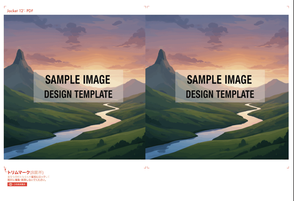 デザインを行う前に、テンプレートファイルに記載されている案内を必ずご確認ください。こちらをご対応いただけない場合、仕上がりに不具合が生じる可能性がありますので、予めご了承ください。